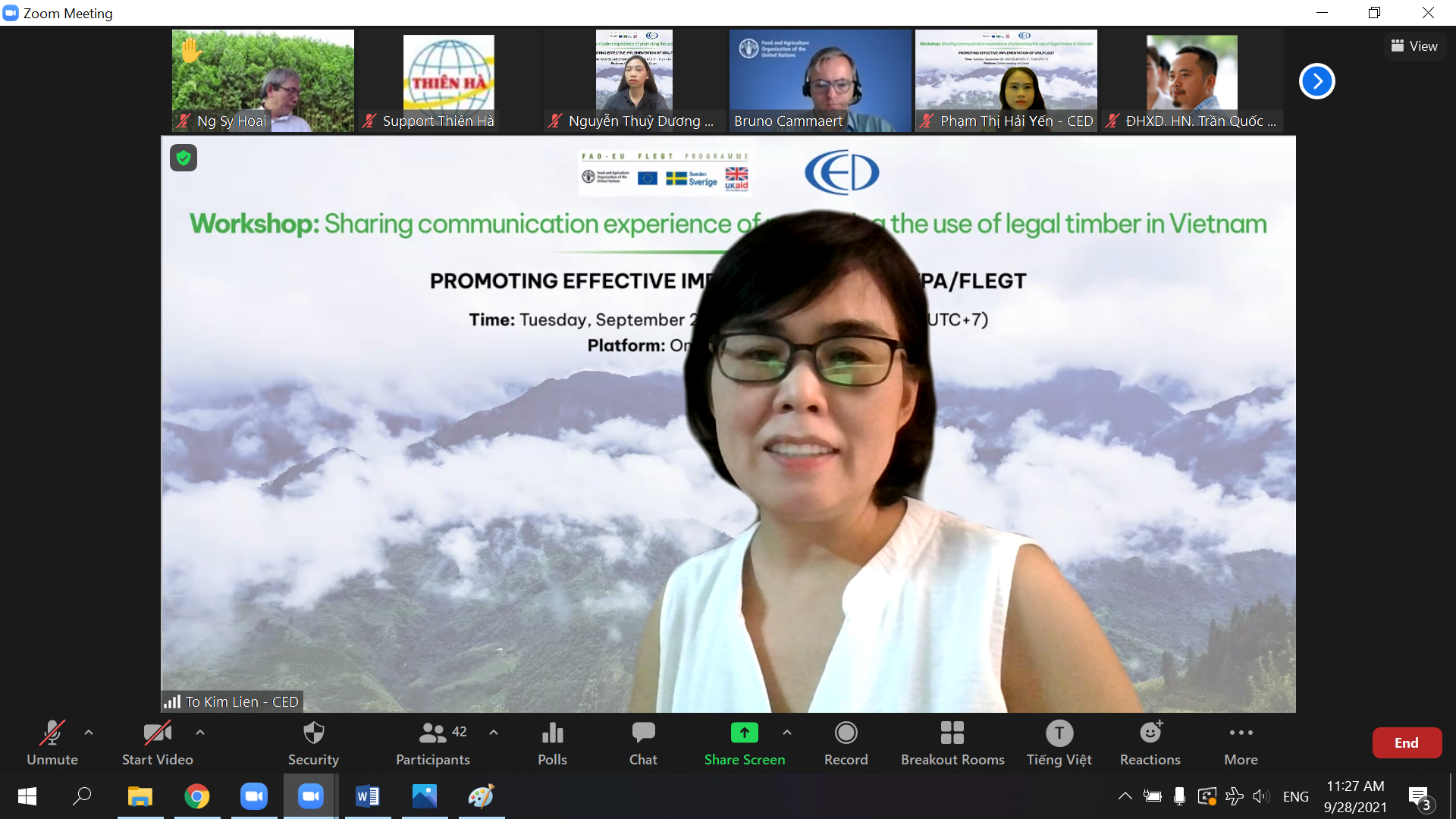 Ngày 28/9/2021, Trung tâm Giáo dục và Phát triển (CED) tổ chức Hội thảo Chia sẻ kinh nghiệm truyền thông thúc đẩy việc sử dụng gỗ hợp pháp tại Việt Nam. Hội thảo được tổ chức online với sự tham gia của 60 đại biểu đến từ các tổ chức trong và ngoài nước. Trong đó có đại diện nhà tài trợ từ Chương trình FAO-EU-FLEGT, đại diện Tổng cục Lâm nghiệp, đại diện các tổ chức, các trường đại học đối tác, đại diện Sở Công thương, Chi cục Kiểm lâm một số địa phương cùng Mạng lưới lãnh đạo trẻ của dự án.